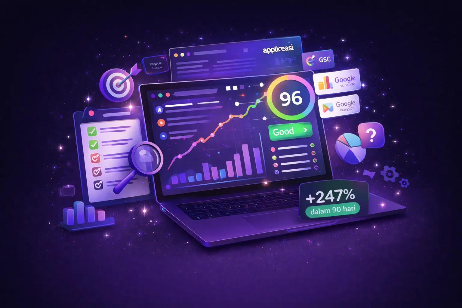 Jasa SEO kami membantu bisnis Anda tampil di halaman pertama Google secara organik. Dilengkapi platform AI untuk riset keyword mendalam dan generate artikel SEO-friendly secara efisien.